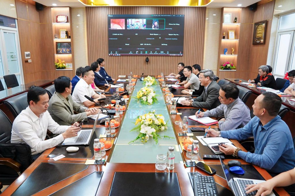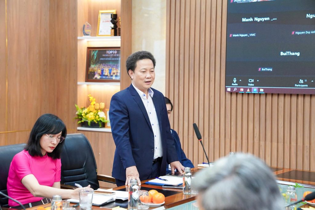 Tham dự buổi làm việc, về phía Tổng Công ty Hàng hải Việt Nam có lãnh đạo các Ban chuyên môn cùng lãnh đạo các đơn vị thành viên trong toàn Tổng Công ty. Về phía Tập đoàn Hóa chất Việt Nam có ông Nguyễn Văn Luyện – Phó Tổng Giám đốc Tập đoàn cùng các lãnh đạo Ban Kế hoạch Kinh doanh tham dự trực tuyến tại “đầu cầu” Hà Nội. Đón tiếp đoàn công tác, phía DRC có ông Lê Hoàng Khánh Nhựt – Tổng Giám đốc, bà Nguyễn Thị Minh Thu – Phó Tổng Giám đốc cùng các lãnh đạo, cán bộ chủ chốt của Công ty.