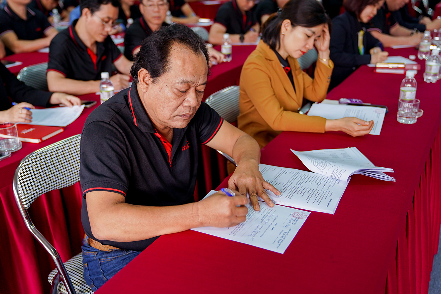 Cũng trong khuôn khổ hội nghị, ông Nguyễn Chí Công – Chủ tịch Công đoàn DRC đã thông qua nội dung và triển khai ký cam kết tuân thủ nội quy lao động cho đại diện người lao động đến từ các phòng ban, xí nghiệp trong toàn Công ty.